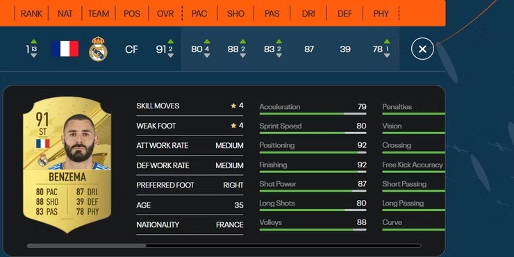 Diese hohe Wertung von Benzema ist absolut verdient und ein gutes Beispiel dafür, dass nicht alle Spieler im gleichen Alter ihren Höhepunkt erreichen, insbesondere wenn sie wie er Benzema bis weit in die 30 hinein fit bleiben können.