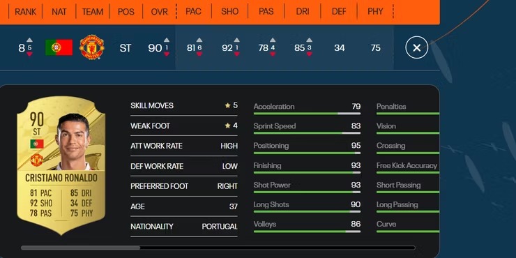 Ronaldo bleibt tödlich im Bereich und einer der besten der Welt, was sich in seinen Spieleigenschaften widerspiegelt. Trotzdem wird die grundlegende FIFA 23 Ronaldo-Karte wahrscheinlich die billigste aller Zeiten sein.