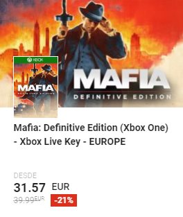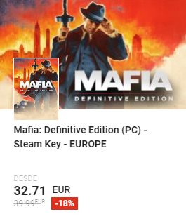 Puedes comprar Mafia Edición Definitiva barato en G2A.com, estos son los precios actuales del juego según las plataformas: